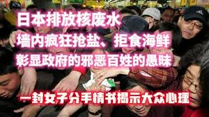 日本排放核废水,墙内疯狅抢盐、拒食海鲜。彰显政府的邪恶百姓的愚味。一封女子分手情书揭示大众心理。2023.08.25NO1971#日本#福岛#排放核废水