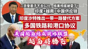 二货爱面子不去G20,结果彻底被要了?印度+越南=中国供应链印度沙特推出一带一路替代方案“多国铁路和港口协议”。美国越南结成战略联盟,越南将腾飞。2023.09.10NO1987#G20