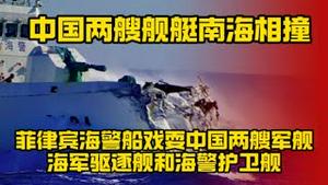 中国两艘舰艇南海相撞。菲律宾海警船戏耍中国两艘军舰。(海军驱逐舰和海警护卫舰)2025.08.11NO2889#海警船