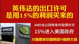 英伟达的出口许可是用15%的利润买来的,AMD也以同样条件取得许可,这15%进入美国政府。川普要求中国购买4倍的大豆。2025.08.11NO2891#英伟达#AMD#出口许可