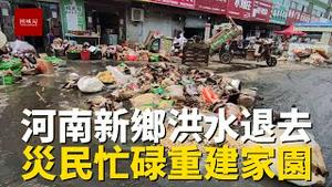 河南新乡乡镇洪水刚刚退去,损失惨重,灾民忙碌重整家园