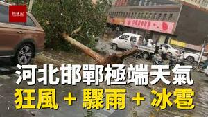 河北邯郸武安一带突发狂风暴雨加冰雹天气,很多树木倒塌,网友担心家院子快塌了