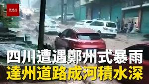 四川达州突遭持续暴雨,街道成河,受灾严重