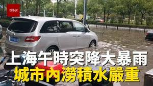 8月11日中午,上海突降大暴雨,市区积水严重,行人被堵路上