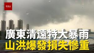 广东清远最大雨量222毫米,漂流景区山洪爆发,城区道路积水,汽车浮在水上摇晃不止