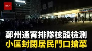 河南郑州二七区连夜通宵核酸检测,小区菜市场封禁,居民隔门抢菜